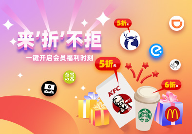 肯德基5折、星巴克6折、瑞幸咖啡5折、滴滴打車(chē)8折……超多會(huì)員專(zhuān)享折扣,開(kāi)啟會(huì)員福利時(shí)刻!
